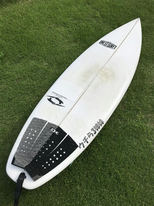 そんなわけもなく ノーズの裏側に前足が当たりボードを破損。。。。理論、どうしてここに足がくるかさっぱりわからん。裏だよ。なんの技?