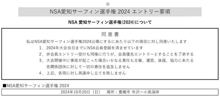 愛知サーフィン選手権エントリ募集 イベント情報 2024年09月17日 日程 10月20日(日)場所 寺沢~小島エントリー期間 9/15(日)~9/29(日)まで(店頭にてよろしくお願いします) http://westsurfco.blog.shinobi.jp/%E3%82%A4%E3%83%99%E3%83%B3%E3%83%88%E6%83%85%E5%A0%B1/%E6%84%9B%E7%9F%A5%E3%82%B5%E3%83%BC%E3%83%95%E3%82%A3%E3%83%B3%E9%81%B8%E6%89%8B%E6%A8%A9%E3%82%A8%E3%83%B3%E3%83%88%E3%83%AA%E5%8B%9F%E9%9B%86愛知サーフィン選手権エントリ募集