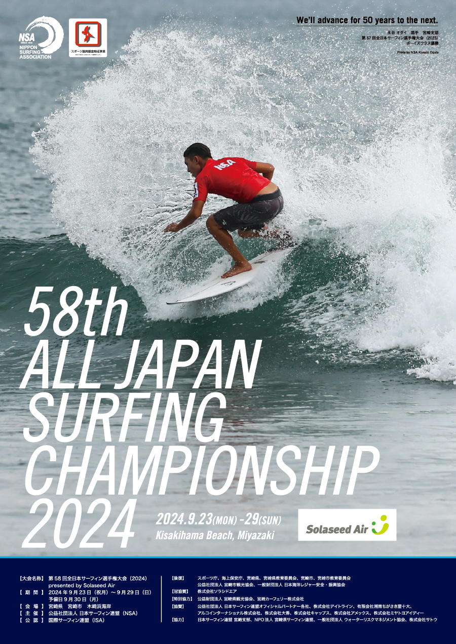 【臨時休業】第58回全日本サーフィン選手権大会へ行ってきます。Go BIG!!! イベント情報 2024年09月23日 全日本選手権大会のため臨時休業となります。期間9月24日(火)~9月28日(土)波のコンディションによって不確定(予備日あり)高瀬の出場予定は9月26日(木)予定 グランドマスター H-18Green愛知支部(ポイントは現在未定ABC?)大会期間中のYOUTUBE LIVEは↓ Aポイントhttps://youtu.be/iHOknxHCGO4Bポイントhttps://youtu.be/lRxkzkbuiiACポイントhttps://youtu.be/YELDgW2rTJc大会中の最新インフォメーションは(レギュレーション等)https://www.nsa-surf.org/match/58th_alljapan-2024_online-info/みなさん応援よろしくお願いします。PR http://westsurfco.blog.shinobi.jp/%E3%82%A4%E3%83%99%E3%83%B3%E3%83%88%E6%83%85%E5%A0%B1/20240923【臨時休業】第58回全日本サーフィン選手権大会へ行ってきます。Go BIG!!!