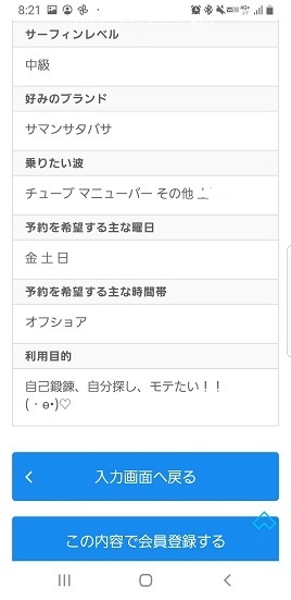 サーファーのユーモア 未選択 2021年04月19日 連日のお話になってしまいますが、静波ウェーブプールが間もなくオープンと言うことで会員登録された方よりこんなユーモアな情報が届きました。「登録しました!」サーフィンレベル初級乗りたい波→エアー チューブ 予約希望 オール 欲張りですね。好みのブランド サマンサ・・・女性もの乗りたい波 削除しました。アウト利用目的 もてないと思います。 以上 普段は真摯にサーフィンされている2名様でした。 http://westsurfco.blog.shinobi.jp/%E6%9C%AA%E9%81%B8%E6%8A%9E/%E3%82%B5%E3%83%BC%E3%83%95%E3%82%A1%E3%83%BC%E3%81%AE%E3%83%A6%E3%83%BC%E3%83%A2%E3%82%A2サーファーのユーモア