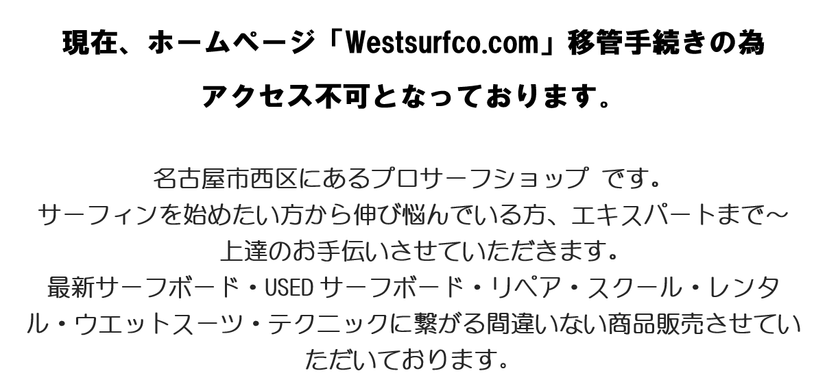 4/1より夏季営業時間となります。 未選択 2019年04月01日 ◆夏季4/1~12/31 日曜日 13:00~20:00 月曜日 13:00~21:00 火曜日 13:00~21:00 水曜日 定休日 木曜日 13:00~21:00 金曜日 13:00~21:00 土曜日 13:00~21:00 ◆只今ホームページ復旧作業中 http://westsurfco.blog.shinobi.jp/%E6%9C%AA%E9%81%B8%E6%8A%9E/4-1%E3%82%88%E3%82%8A%E5%A4%8F%E5%AD%A3%E5%96%B6%E6%A5%AD%E6%99%82%E9%96%93%E3%81%A8%E3%81%AA%E3%82%8A%E3%81%BE%E3%81%99%E3%80%824/1より夏季営業時間となります。