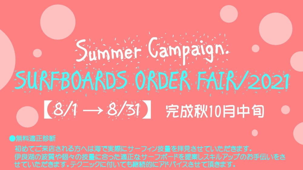 サーフボードオーダーフェア31日(火)までとなります。 未選択 2021年08月29日 サーフボードオーダーフェア31日(火)までとなります。お見逃しなく!Beautifull morning but small day.a lot of anglers...... http://westsurfco.blog.shinobi.jp/%E6%9C%AA%E9%81%B8%E6%8A%9E/%E3%82%B5%E3%83%BC%E3%83%95%E3%83%9C%E3%83%BC%E3%83%89%E3%82%AA%E3%83%BC%E3%83%80%E3%83%BC%E3%83%95%E3%82%A7%E3%82%A231%E6%97%A5%EF%BC%88%E7%81%AB%EF%BC%89%E3%81%BE%E3%81%A7%E3%81%A8%E3%81%AA%E3%82%8A%E3%81%BE%E3%81%99%E3%80%82サーフボードオーダーフェア31日(火)までとなります。